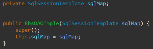 **DAOImple에 private SqlSessionTemplate sqlMap; 멤버변수 선언