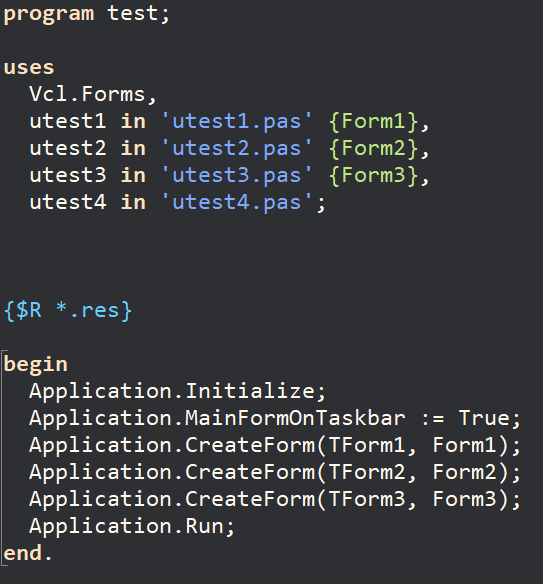 - 각각의 유니트들은 컴파일하여 .DCU(Delphi Compiles Unit)를 만듦.