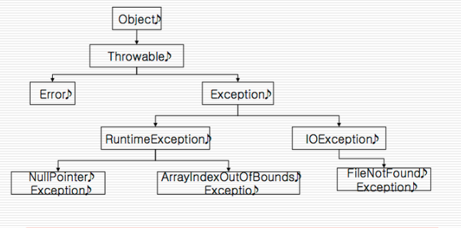 -예외 : 프로그램이 진행하는 과정에서 만나게 되는 오류(가벼운 정도의 에러)