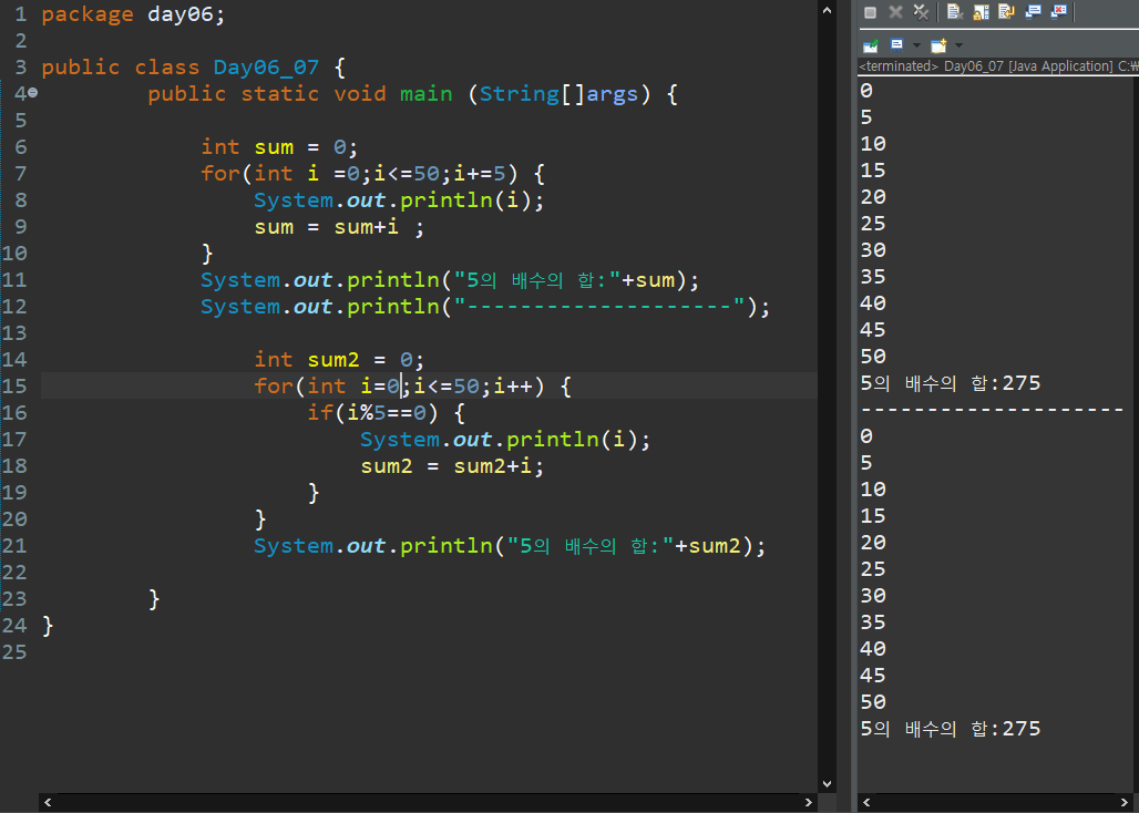 초기식은 임시적으로 보관할 수 있는 변수타임 선언하고 내가 시작하고 싶은 숫자로 초기화한다.